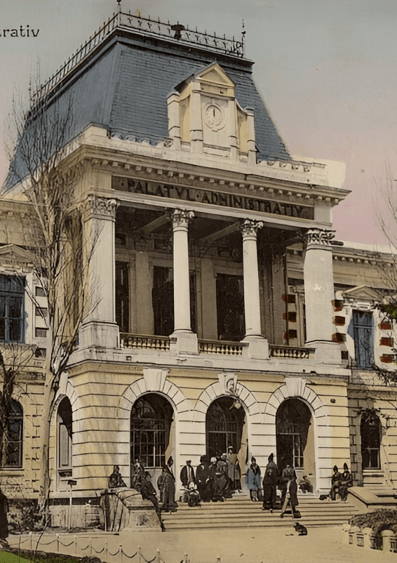 O fotografie a Prefecturii din anul 1910, fără ceas și fără gard de metal.